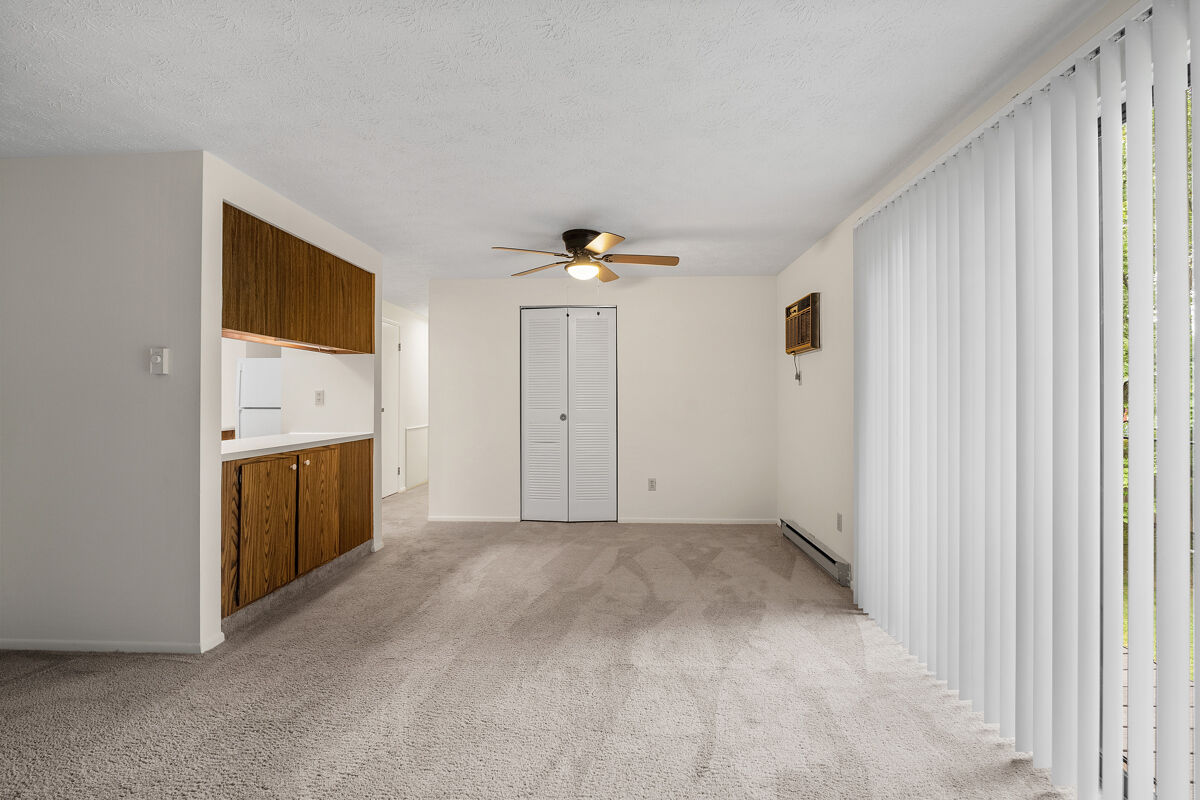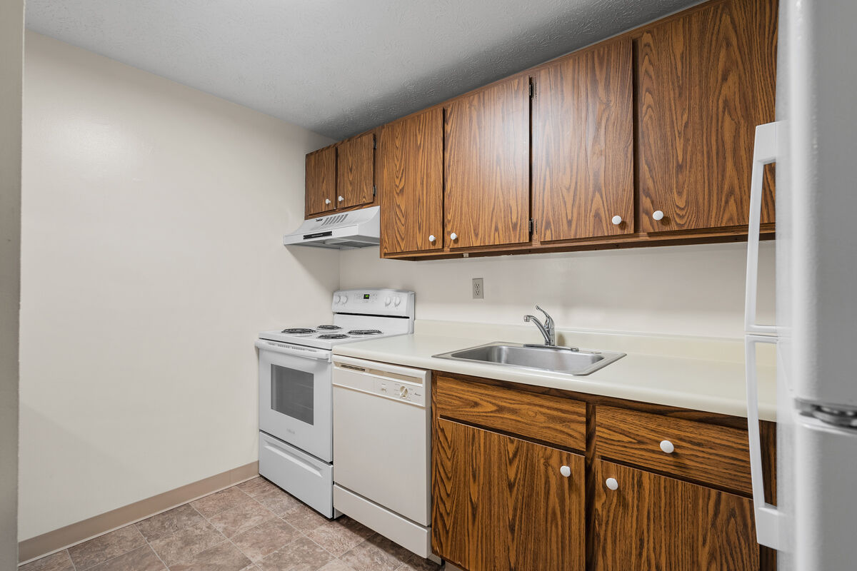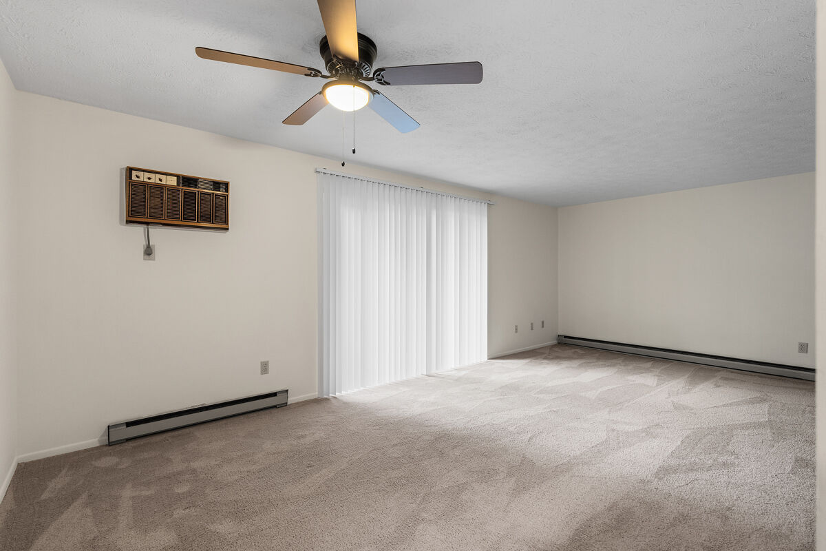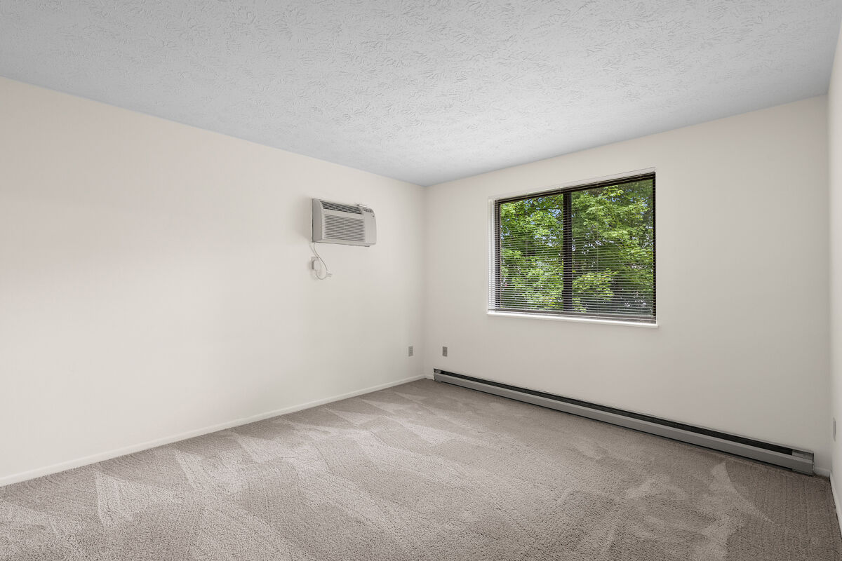 This second floor unit includes a private balcony; wall-to-wall carpeting; fully-equipped kitchen with range, refrigerator, dishwasher, and garbage disposal; electric heat and wall-unit air conditioning; laundry facilities are located on the first floor of each building.