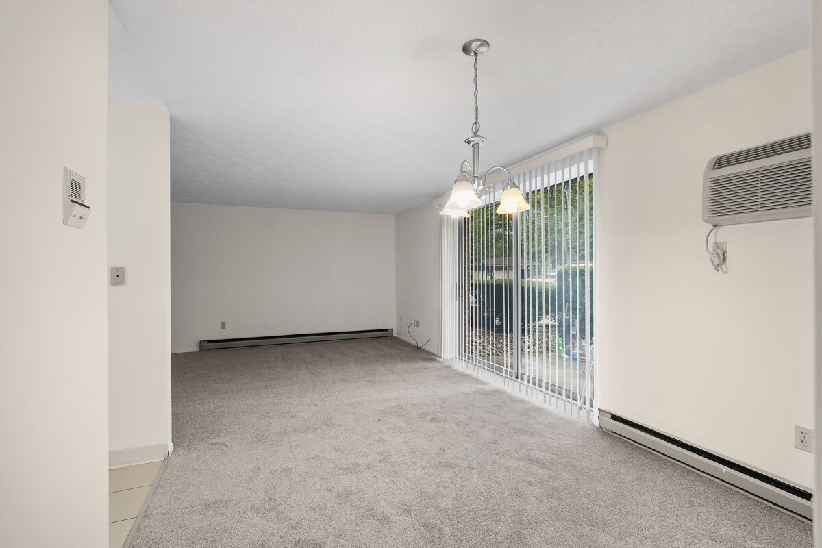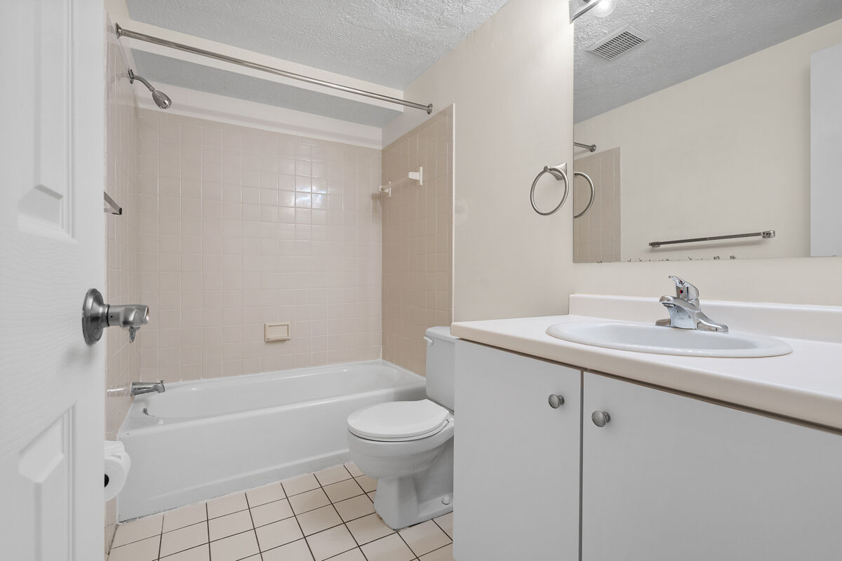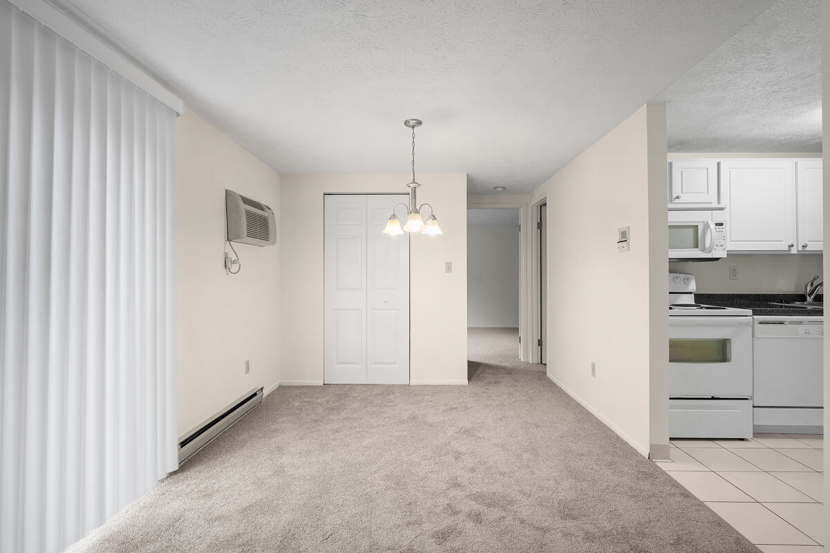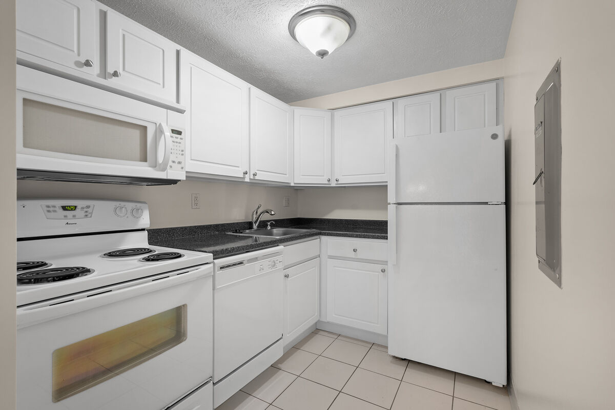 This first floor unit includes a private patio; wall-to-wall carpeting; fully-equipped kitchen with range, refrigerator, dishwasher, and garbage disposal; electric heat and wall-unit air conditioning; laundry facilities are located on the first floor of each building.