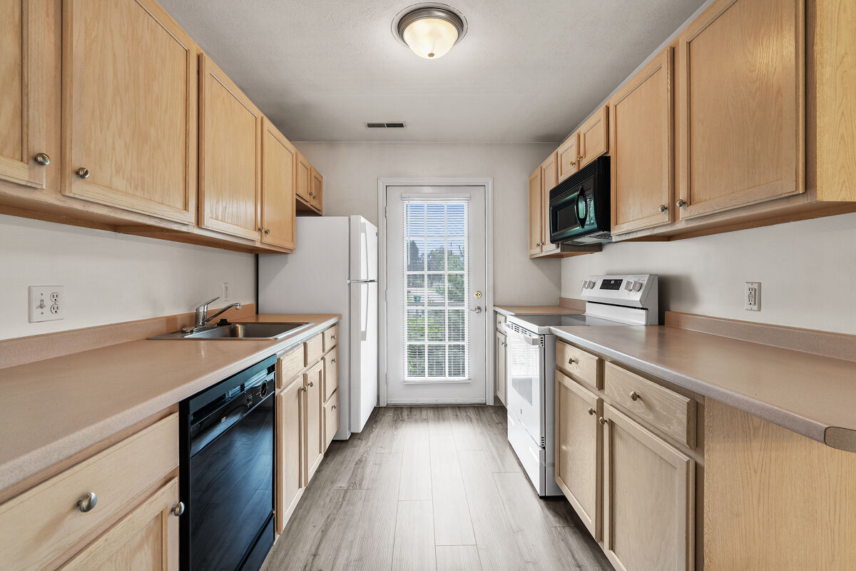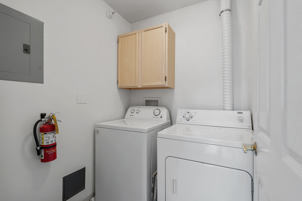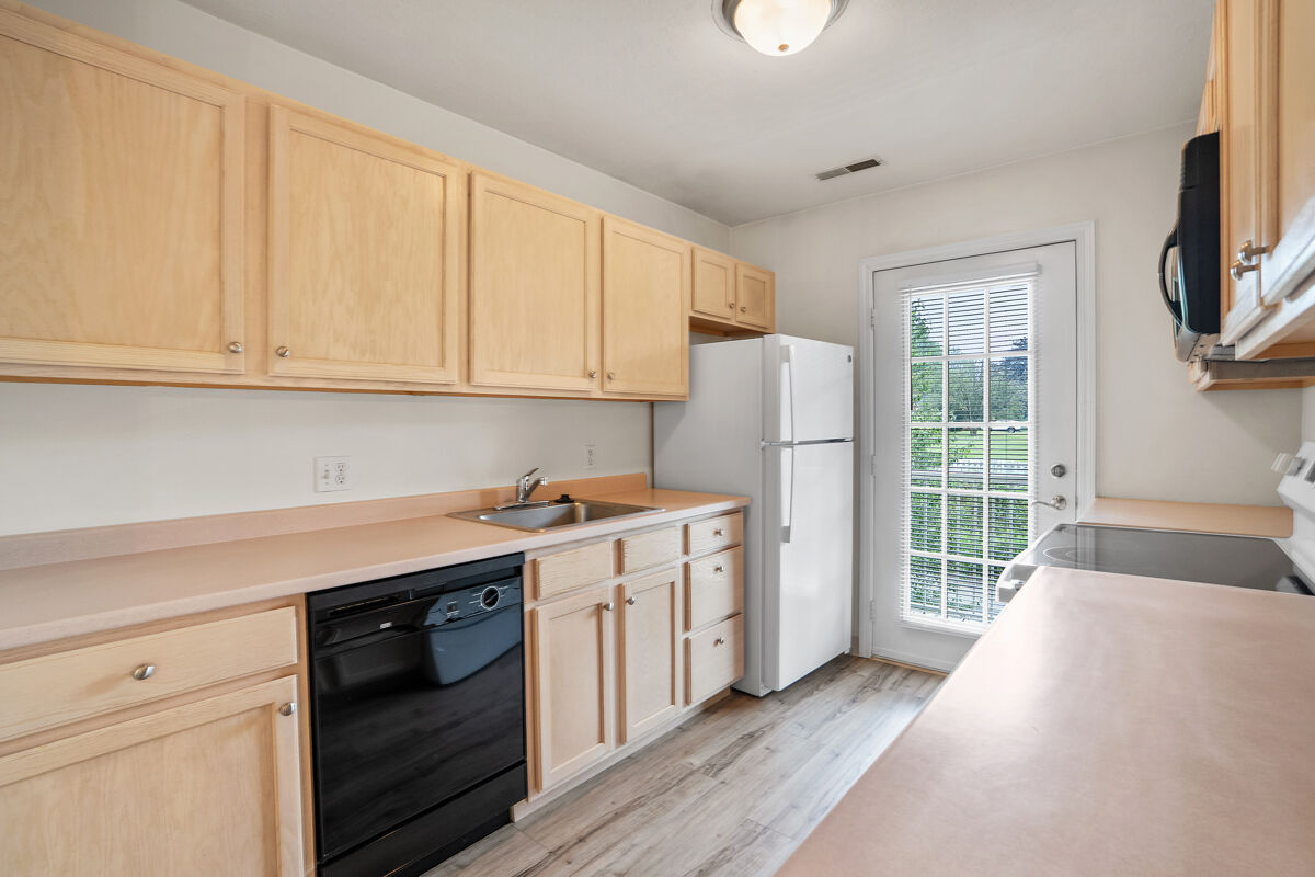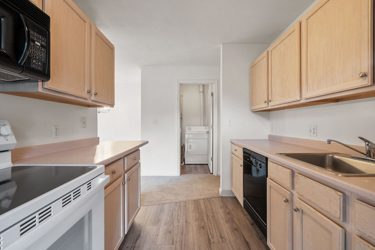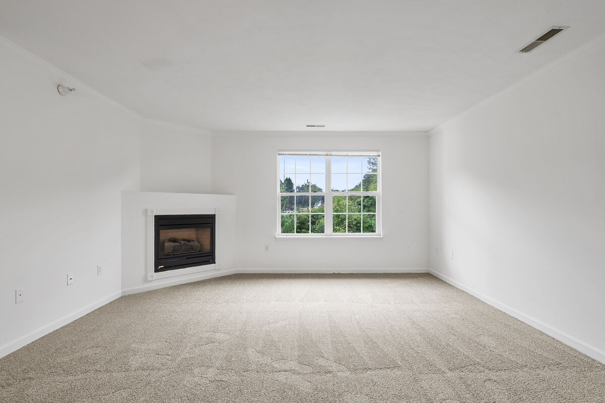This contemporary third floor apartment includes a balcony; wall-to-wall carpeting; fully-equipped kitchen with range, refrigerator, dishwasher, microwave, and garbage disposal; full size washer and dryer; gas fireplace; gas heat and central air conditioning.