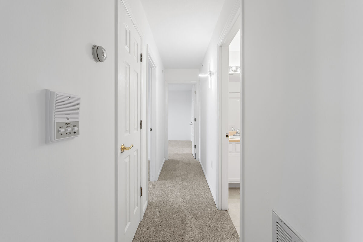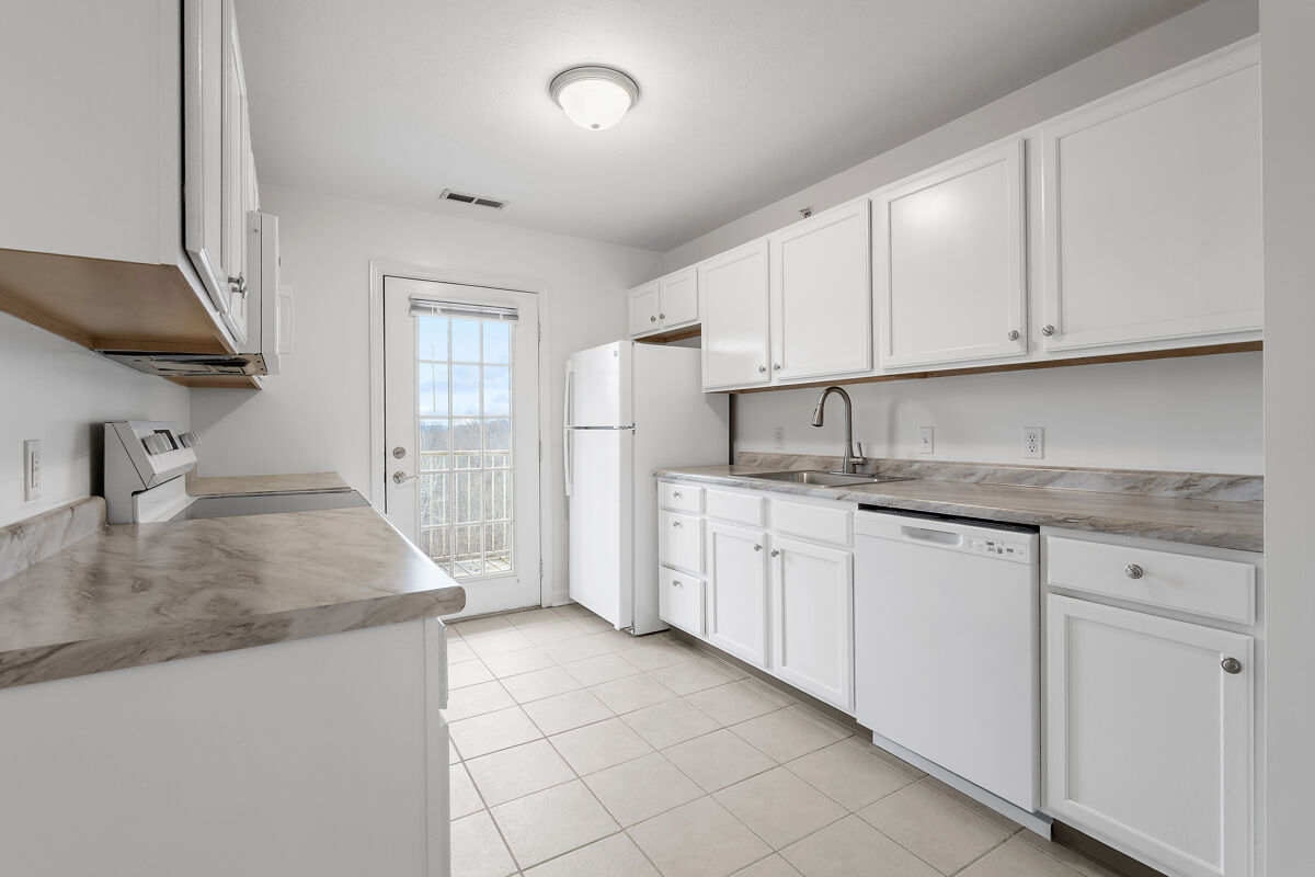 This contemporary third-floor apartment includes a separate den/office space; a balcony; hardwood floors in living area, wall-to-wall carpeting;fully-equipped kitchen with range, refrigerator, dishwasher, microwave, and garbage disposal; full size washer and dryer; gas fireplace; gas heat and central air conditioning.