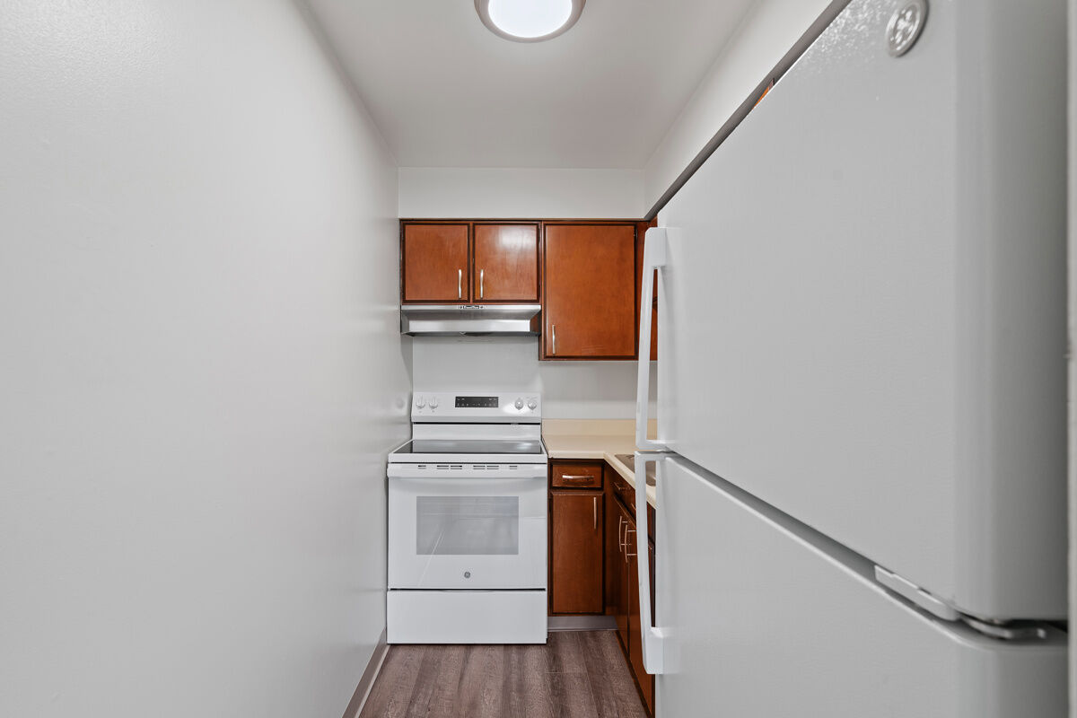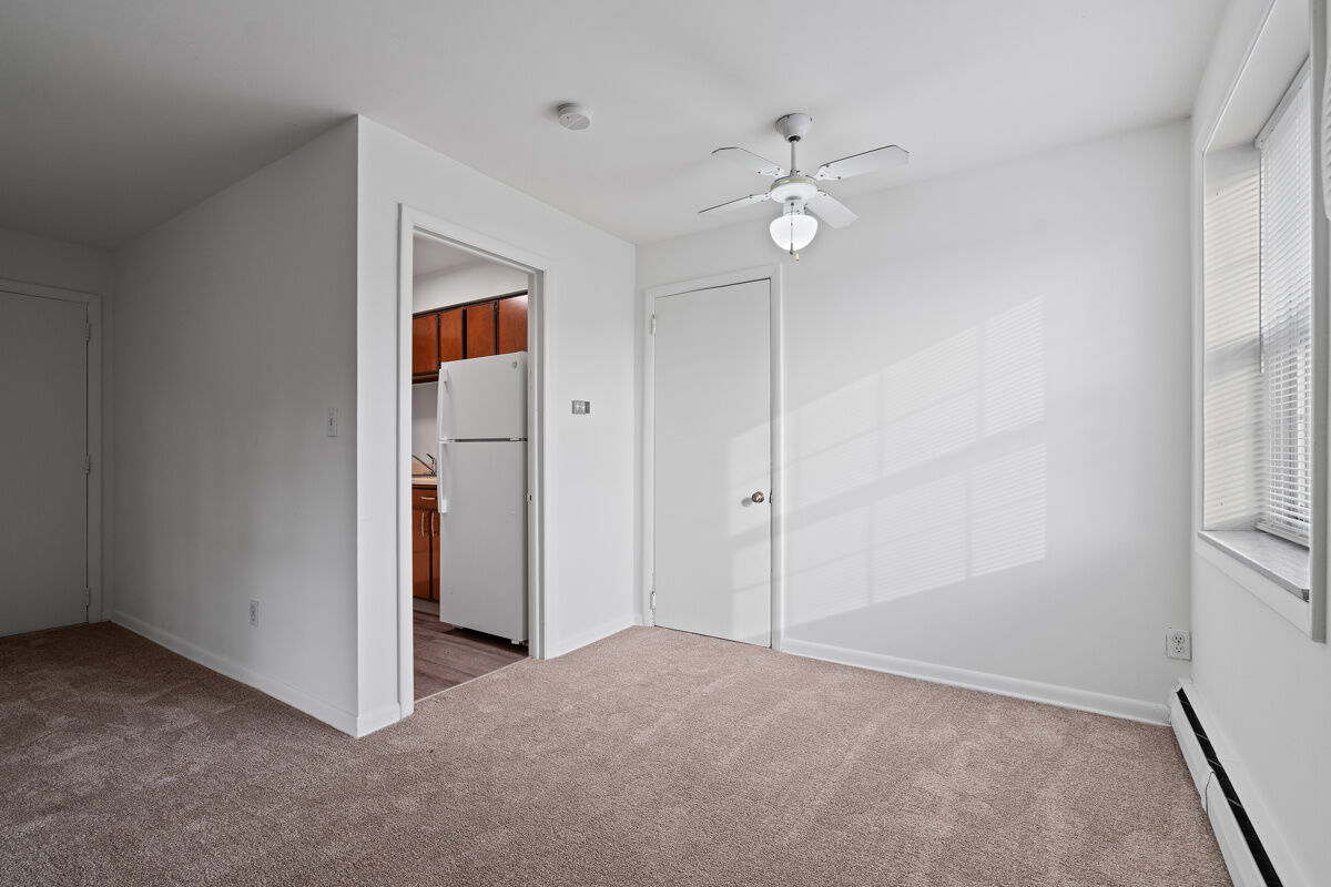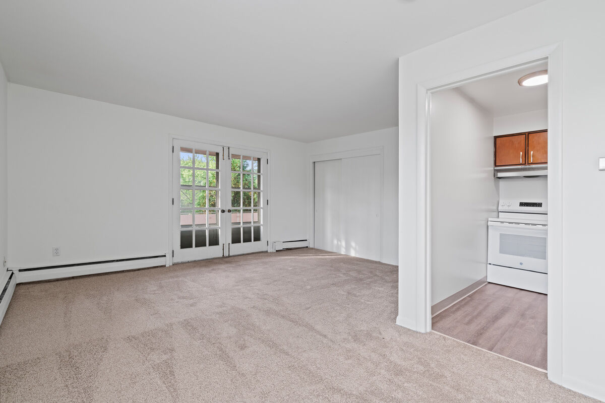 This third floor one bedroom apartment includes a private balcony; wall-to-wall carpeting; equipped kitchen with range and refrigerator; wall-unit air conditioning; intercom system; laundry facilities located in the building; ample off-street parking available.