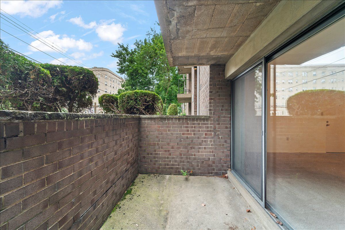First-floor residence located in a contemporary apartment building with elevator access; central air conditioning; wall-to-wall carpet; private patio; modern kitchen with refrigerator, range, and dishwasher; ample laundry facilities available in building; off-street parking available for an additional monthly fee.