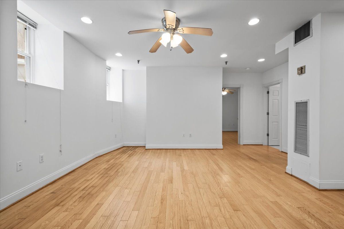Semi-sublevel residence located in a restored Victorian-style apartment building with elevator access; central heat and air conditioning; hardwood floors throughout; modern kitchen with refrigerator, range, dishwasher, and built-in microwave; ample laundry and private storage facilities available in building; off-street parking available for an additional monthly fee.