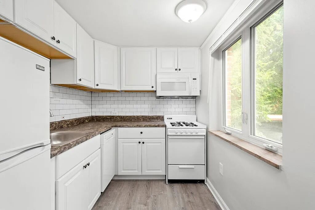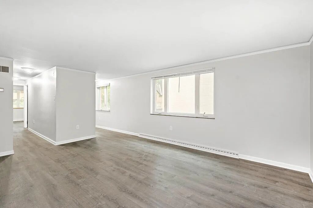 Second-floor renovated residence located in a contemporary apartment building; air conditioning; kitchen with refrigerator, range, and dishwasher; luxury vinyl plank (LVP) throughout; ample storage and laundry facilities available in building; off-street parking available for an additional monthly fee.