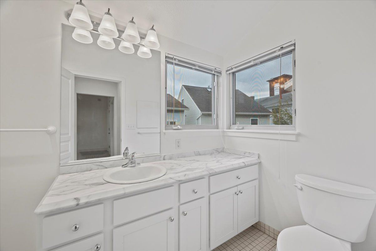 This spacious townhouse boasts high ceilings, hardwood maple floors in a light-filled living room, dining room and kitchen; a gas fireplace; a private deck; and an open kitchen with refrigerator, range, disposal, built-in microwave, and dishwasher.